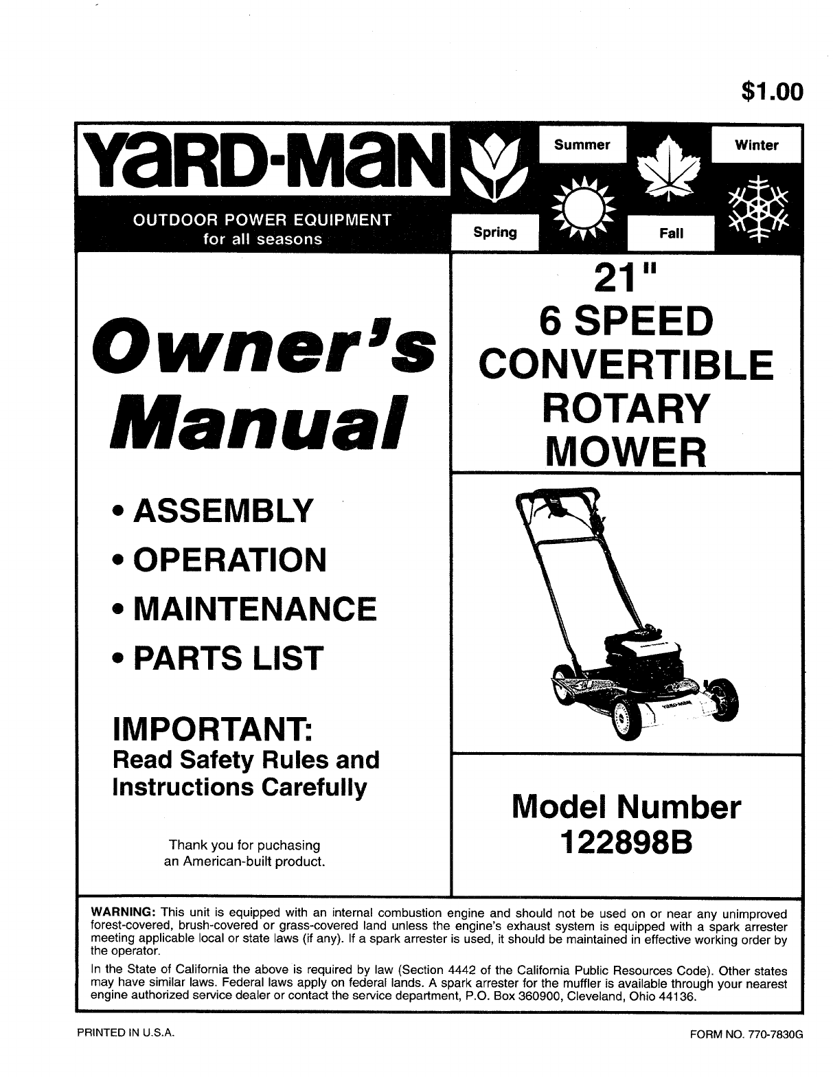 : Yard-Man Man-122898B-Users-Manual yard-man-122898b-users-manual-474032 yard-man pdf