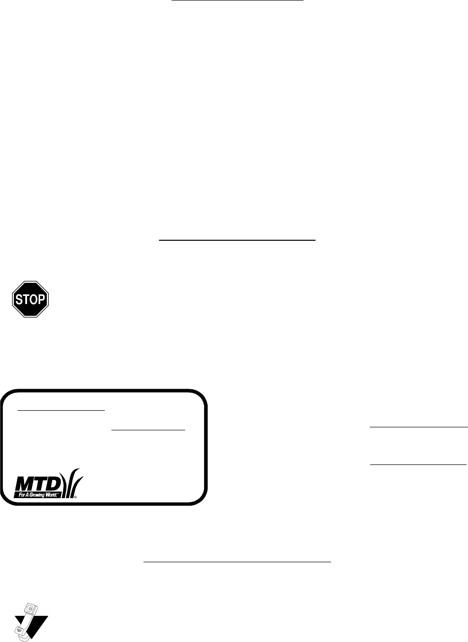 MTD PRODUCTS INC. P.O. BOX 368022 CLEVELAND, OHIO 44136-9722