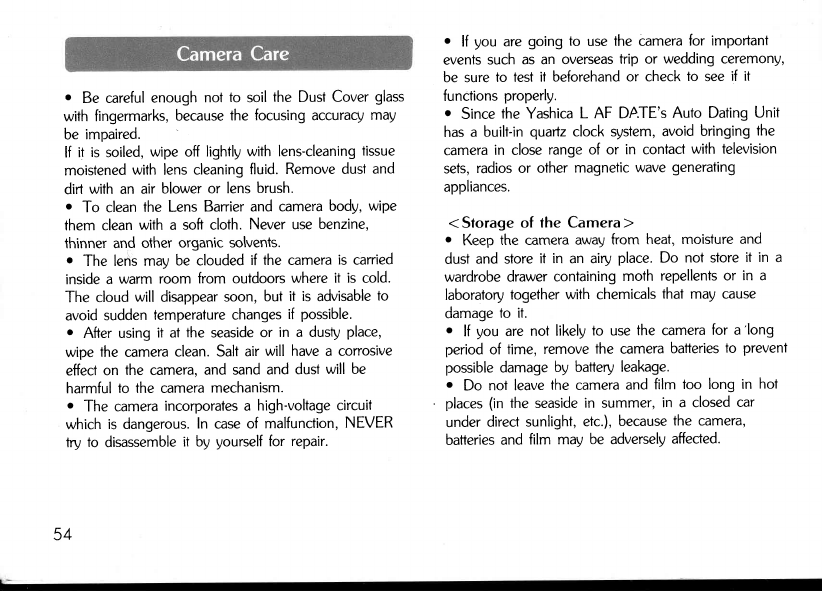 Yashica L Af Instruction Booklet Www.orphancameras.com