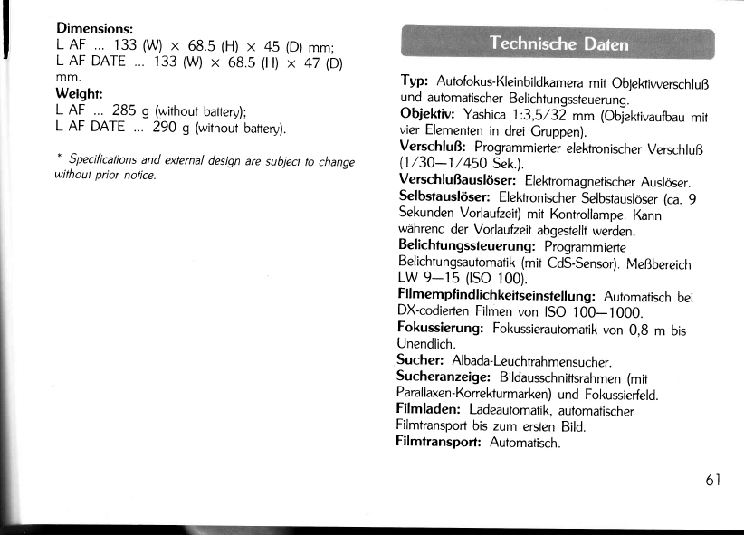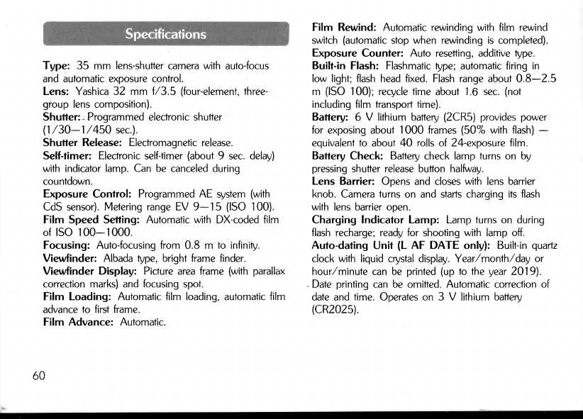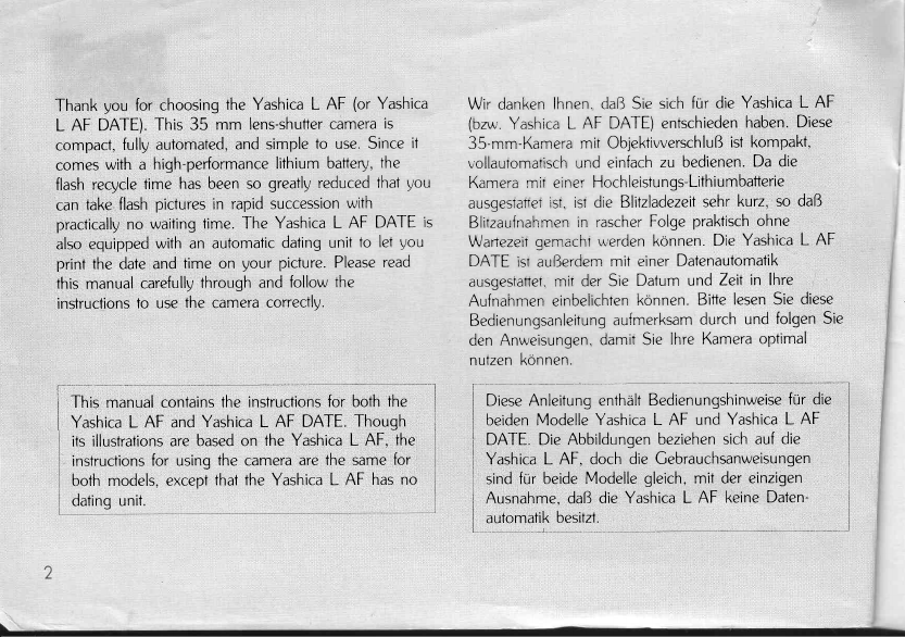 L AF - Instruction Booklet Yas_L_eng Free User Guide for Yashica Camera, Manual