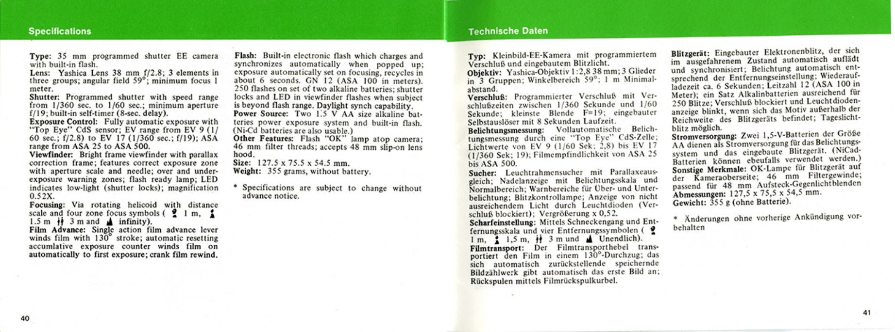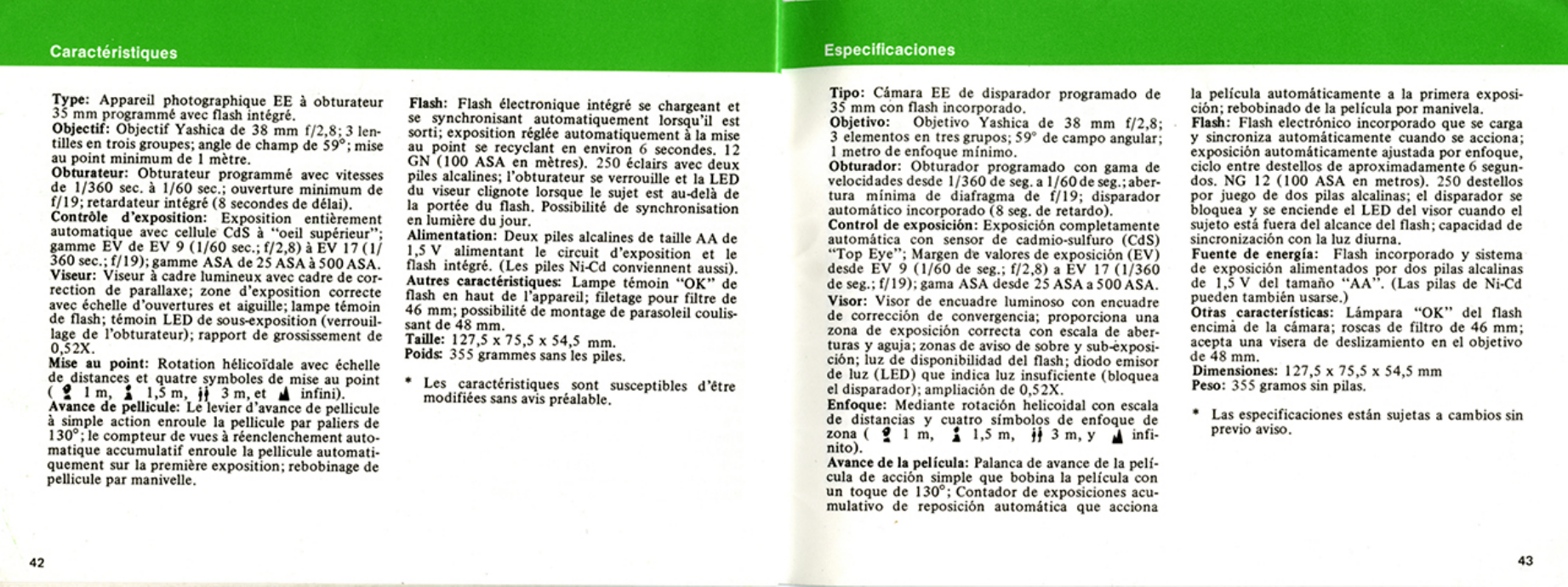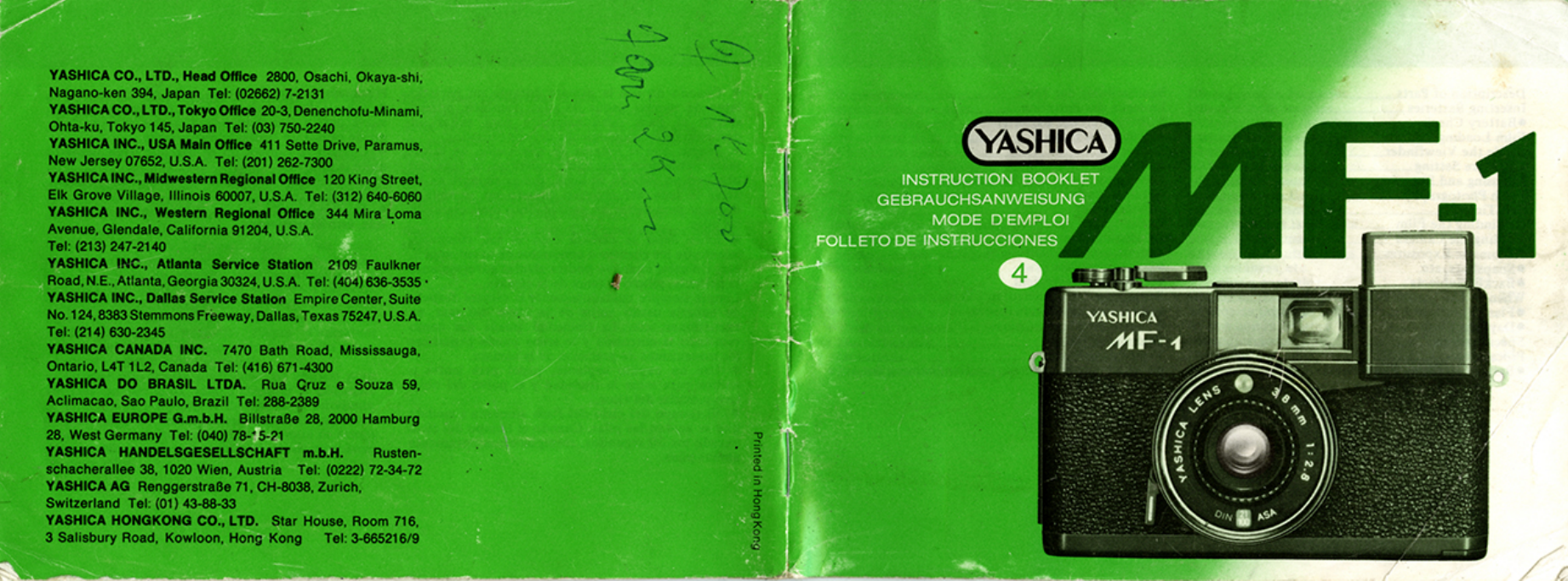 Yashica Mf 1 Instruction Booklet