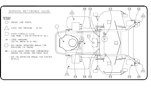 2. Stop engine and remove spark plug wires or remove key before adjusting, servicing, or performing