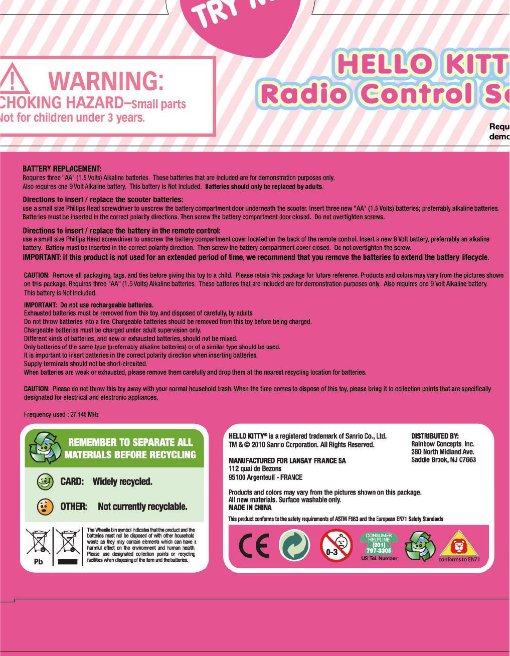 Yick Shun Electronic Toys 10962 Remote Controller for Toy User Manual Manual