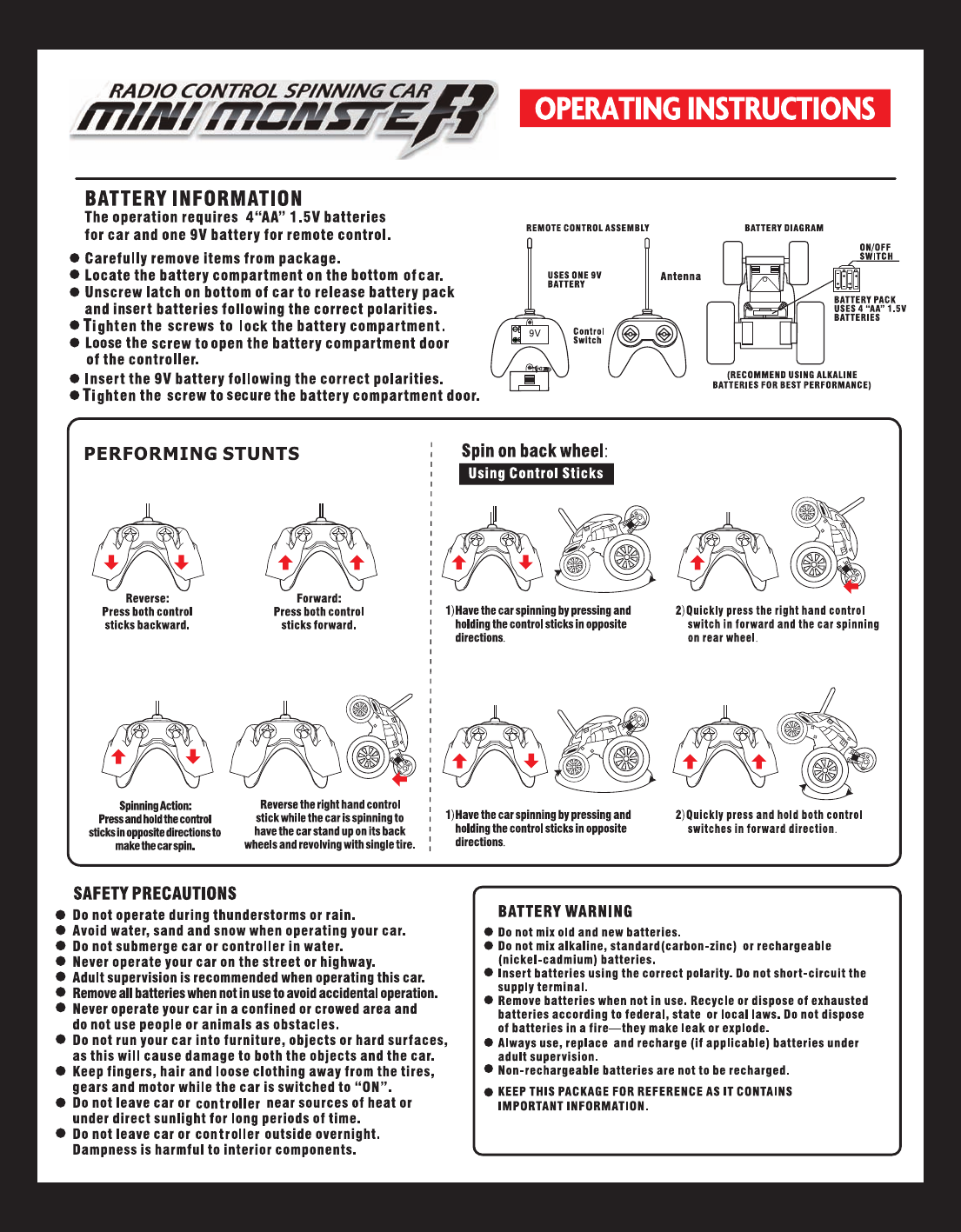 Yinrun Industry 10031-32R49M Rc Mini Monster Car User Manual 10031