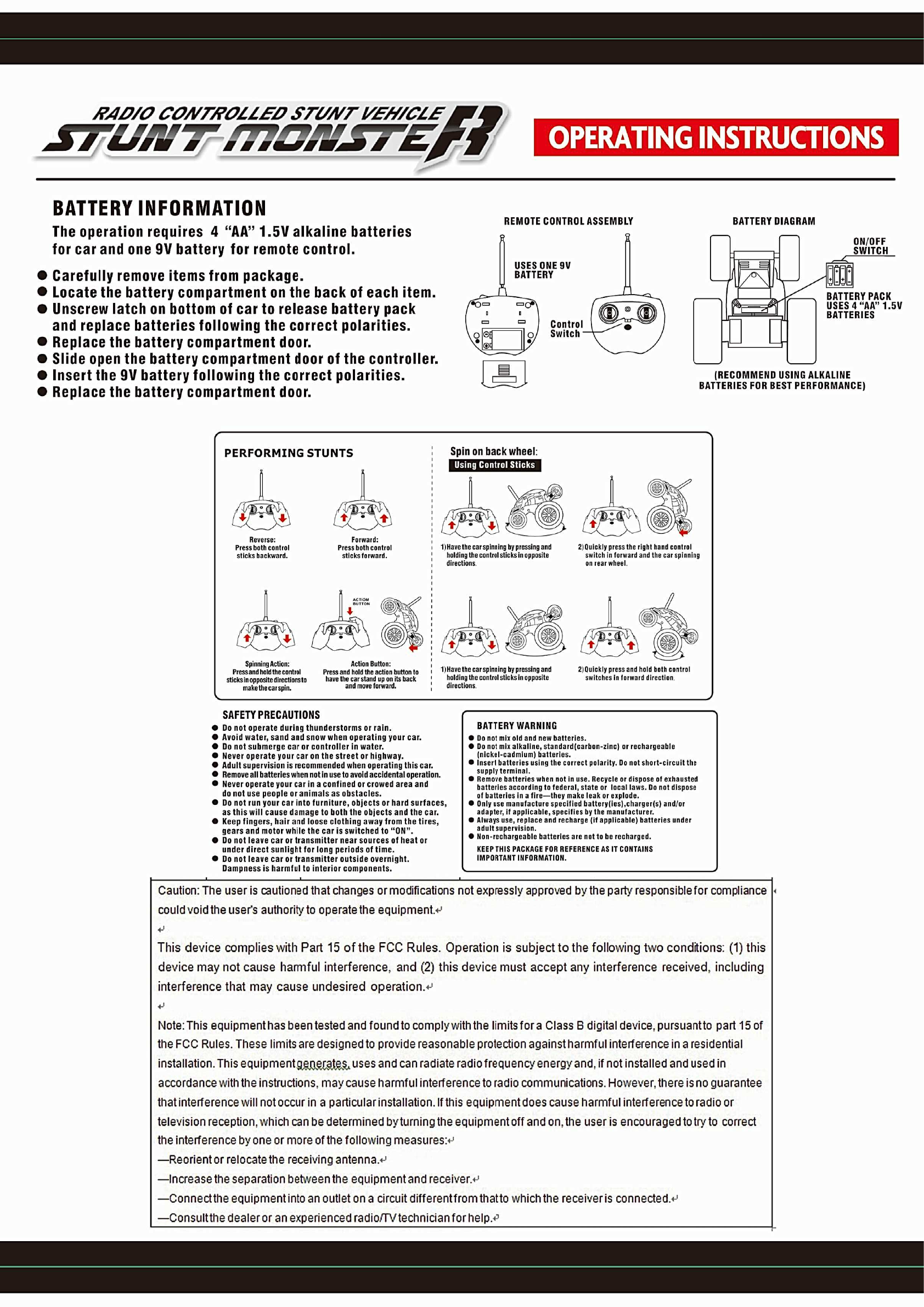 Yinrun Industry 8012-T27M TOY-R/C MONSTER SPINNING CAR User Manual Full page photo