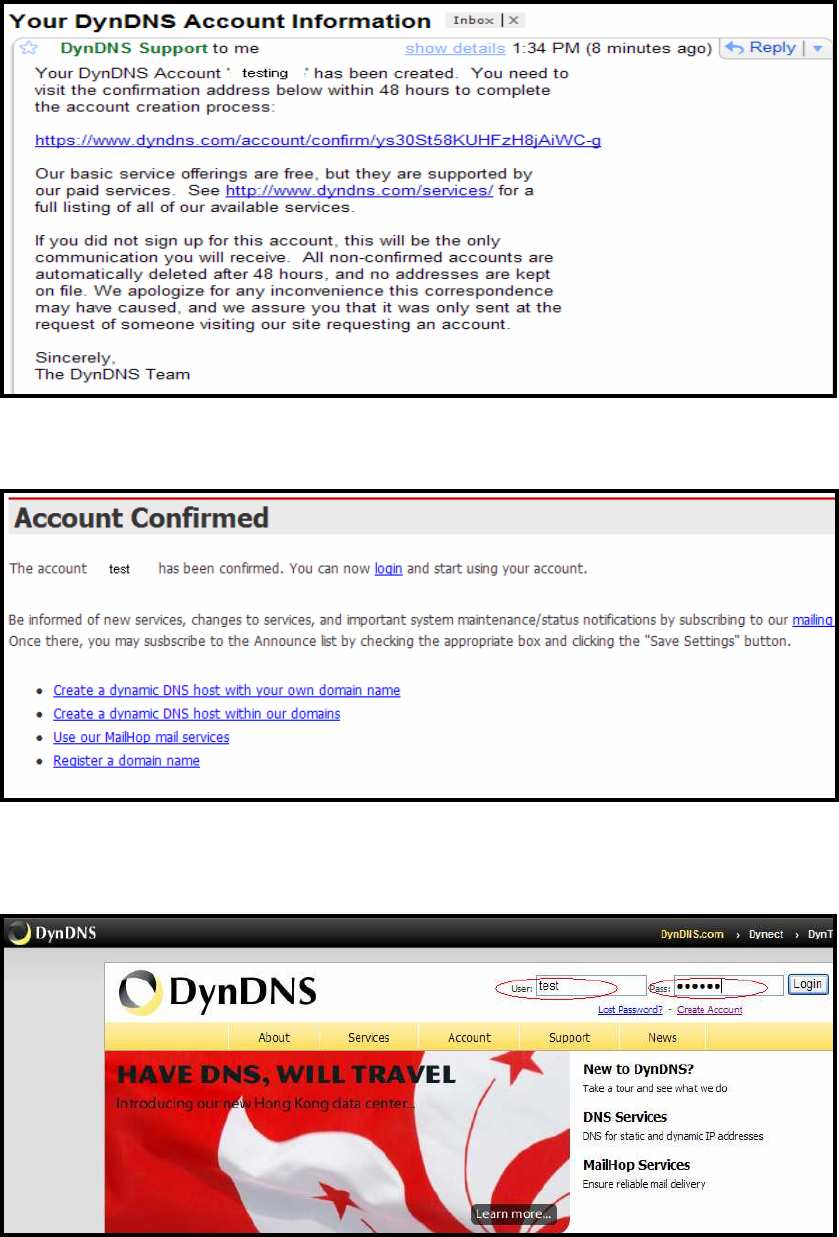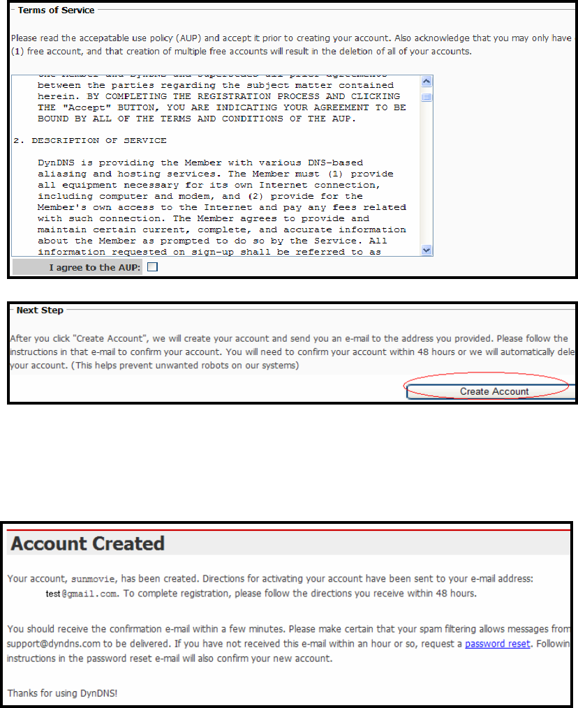 4. Then, you will see the screen “Account Created”, and Dyndns will email