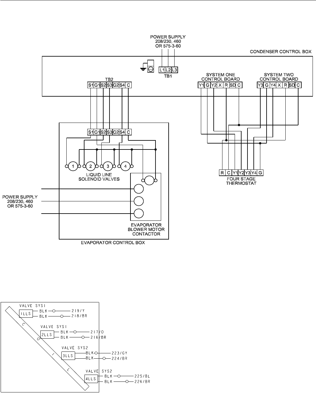 - a. Include factory-mounted distributors, adjustable thermal expansion valves and solenoid valves for both capacity reduction and refrigerant pump out on start- up.