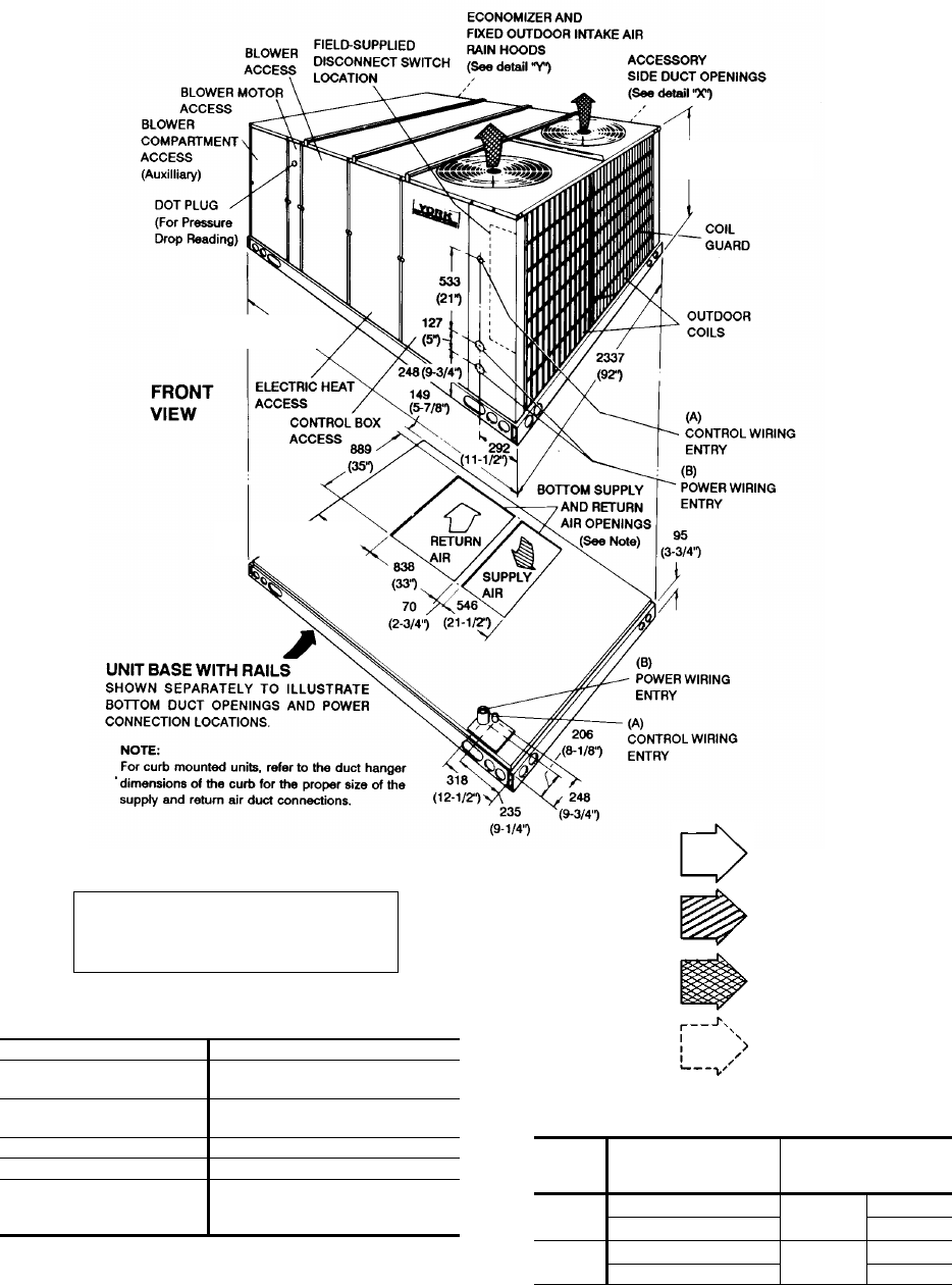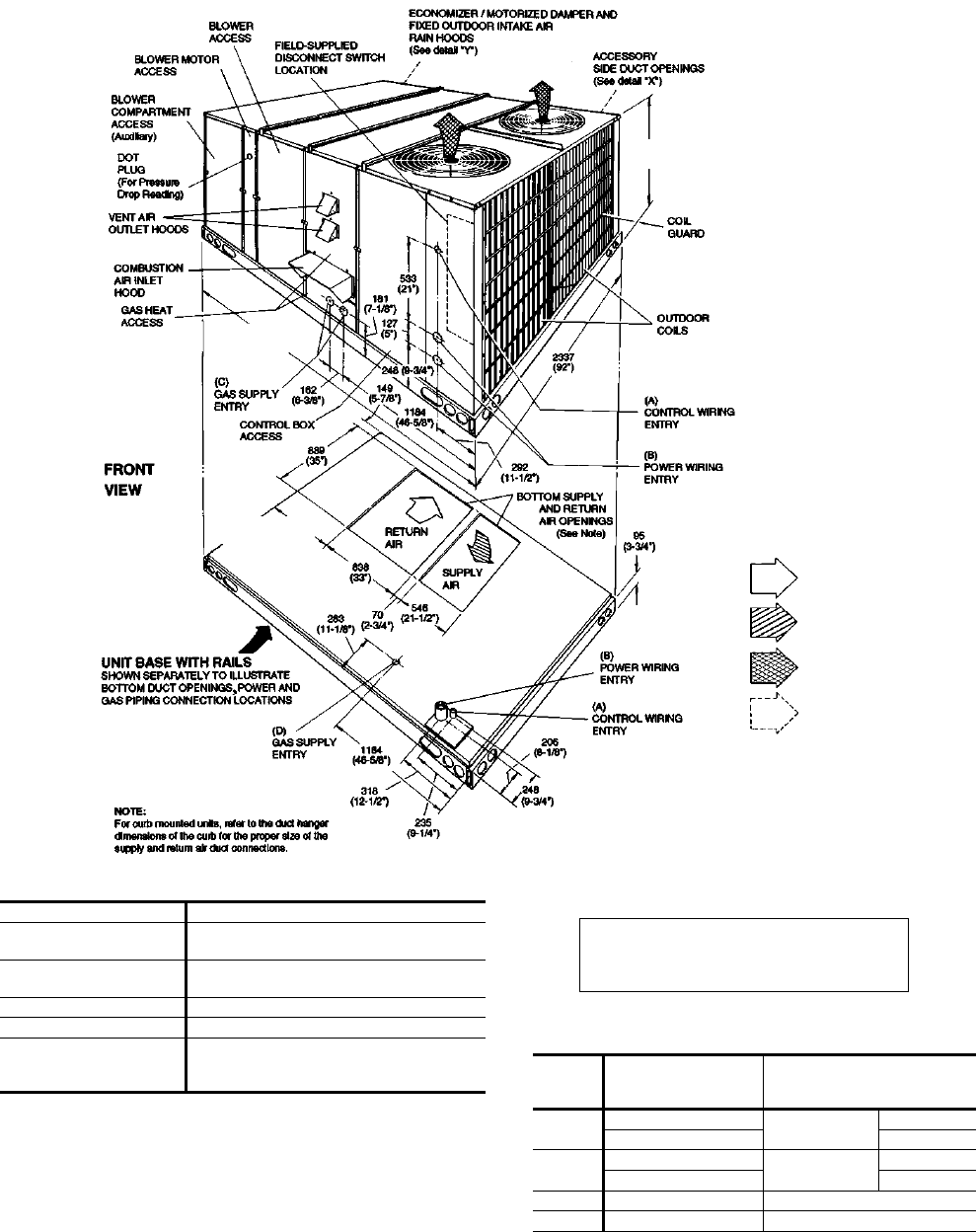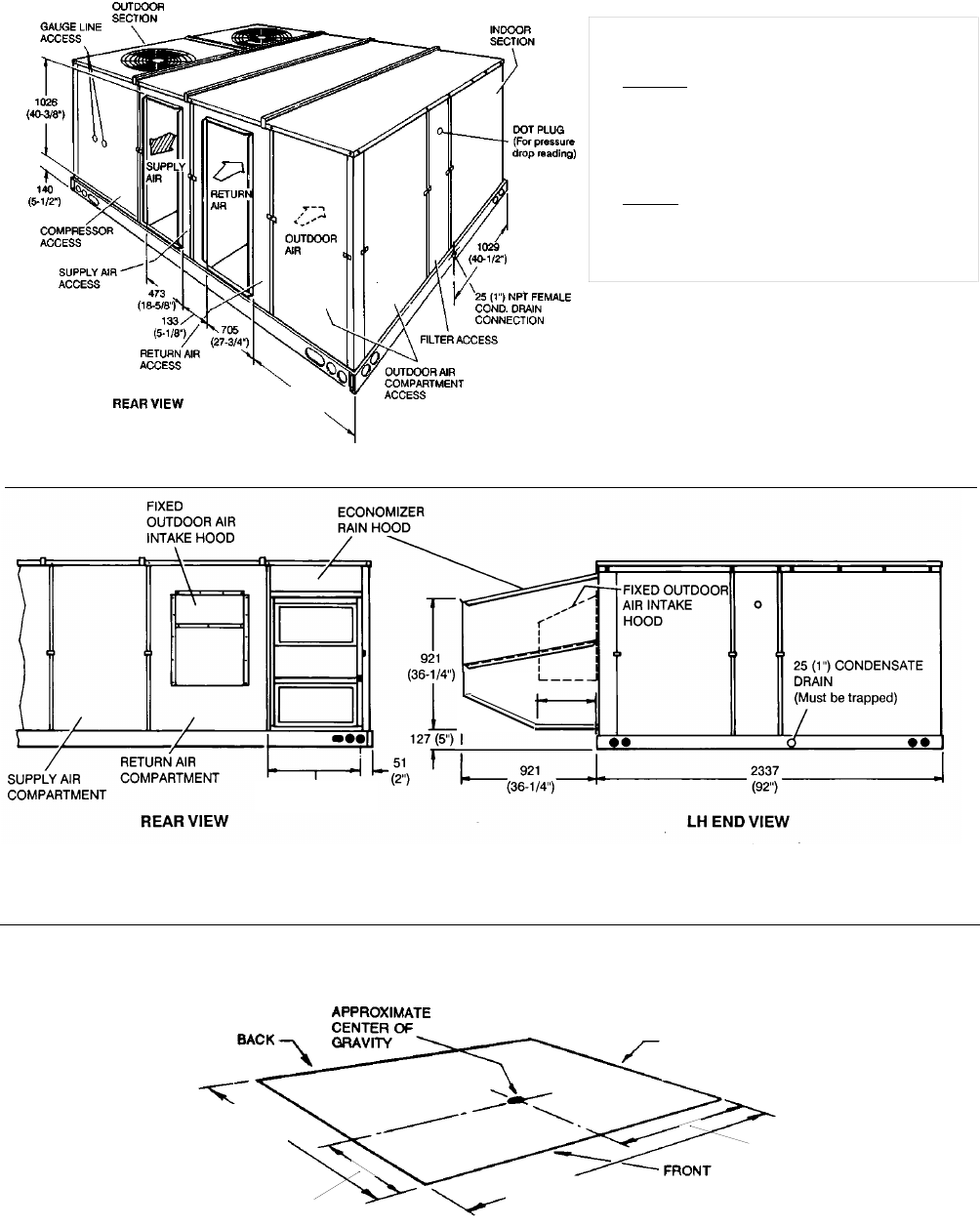 UNIT WITH ECONOMIZER AND FIXED OUTDOOR AIR HOODS