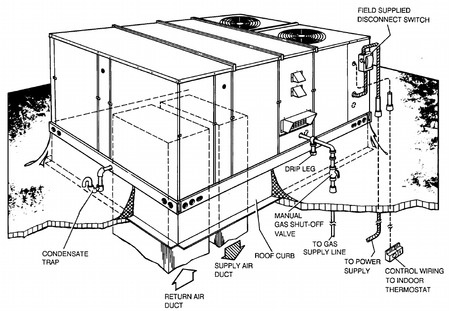 supply air ductwork for a distance of 0.9m (3 ft) from the unit.
