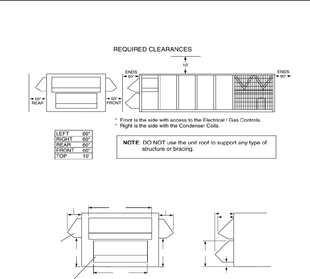 - FIGURE 38 - CLEARANCES - HOOD/ECONOMIZER & MOTOR DRIVE - FRONT & END