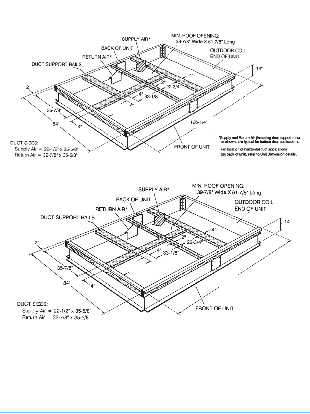 2. The 58-1/2” overall dimension of the ducts allows ductwork