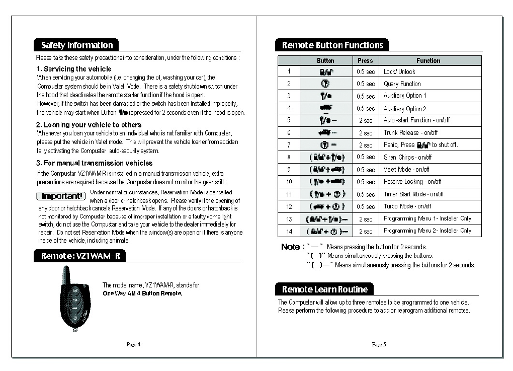 Youngshin Electronics J1WAM4RVZ Car Alarm System User Manual