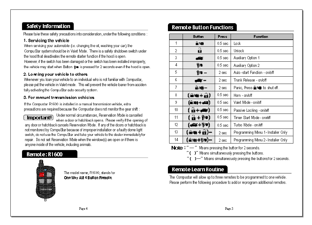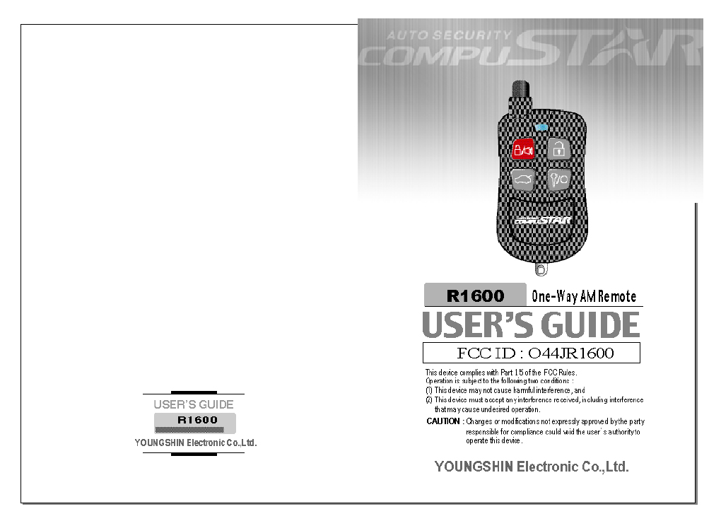 Youngshin Electronics JR1600 Car Alarm Transmitter User Manual