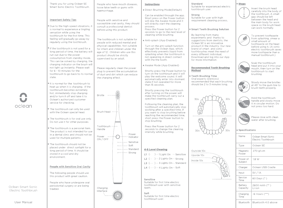 Yunding Information Technology OCLEANSE Oclean Smart Sonic Electric Toothbrush User Manual Users manual