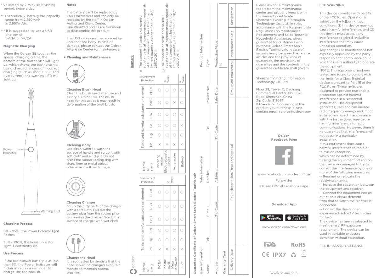 Shenzhen Yunding information Technology Co.,Ltd Oclean Smart Sonic Electric Toothbrush Users manual
