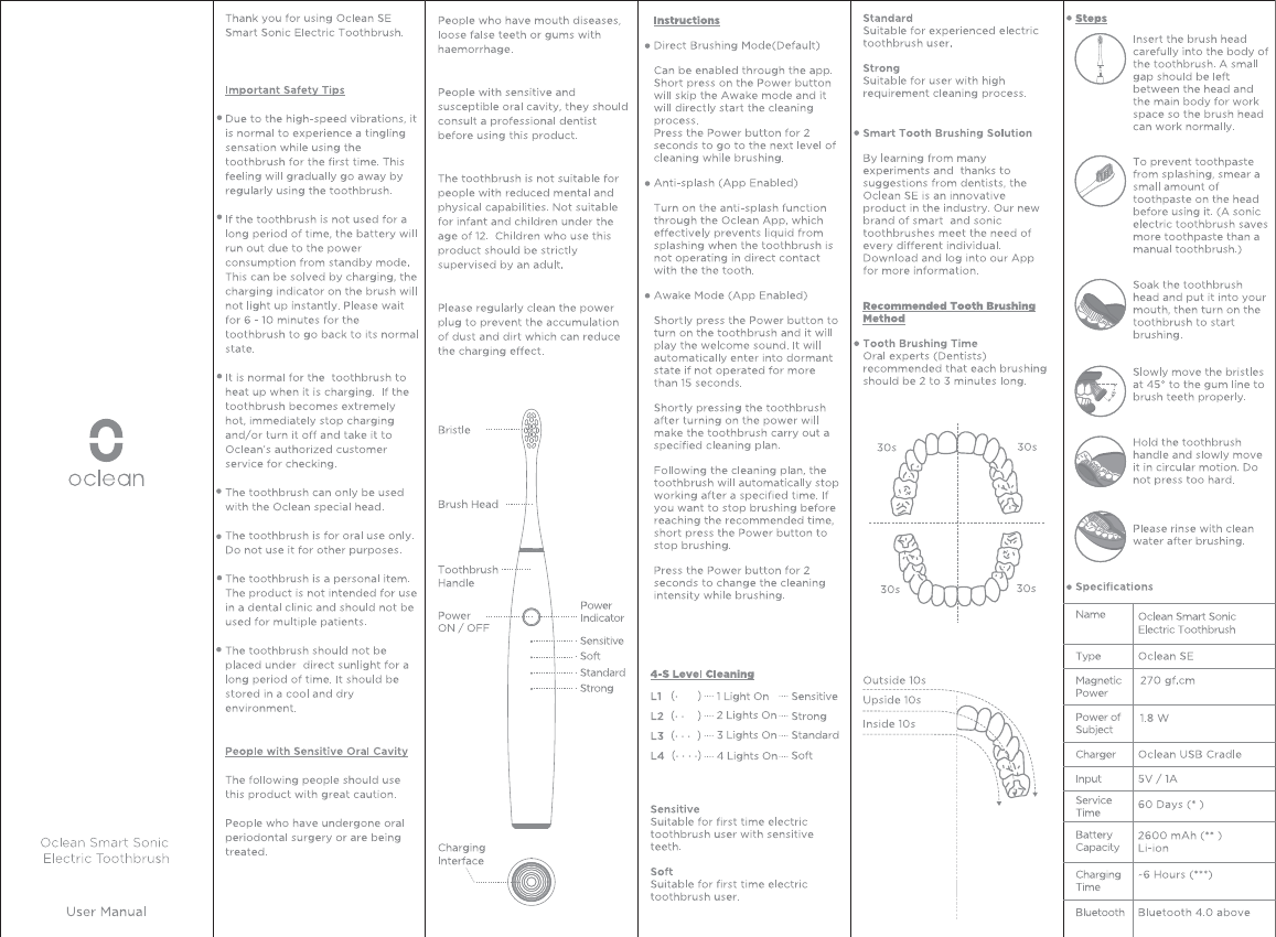 Shenzhen Yunding information Technology Co.,Ltd Oclean Smart Sonic Electric Toothbrush Users manual