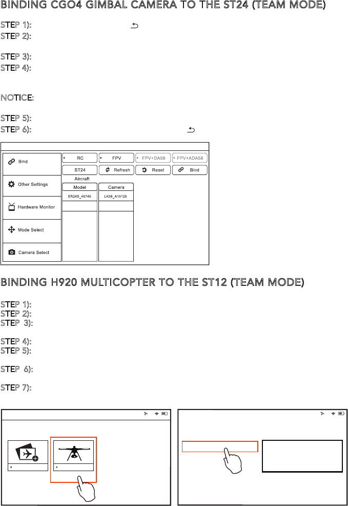 BINDING H920 MULTI-COPTER TO THE ST12 (TEAM MODE)