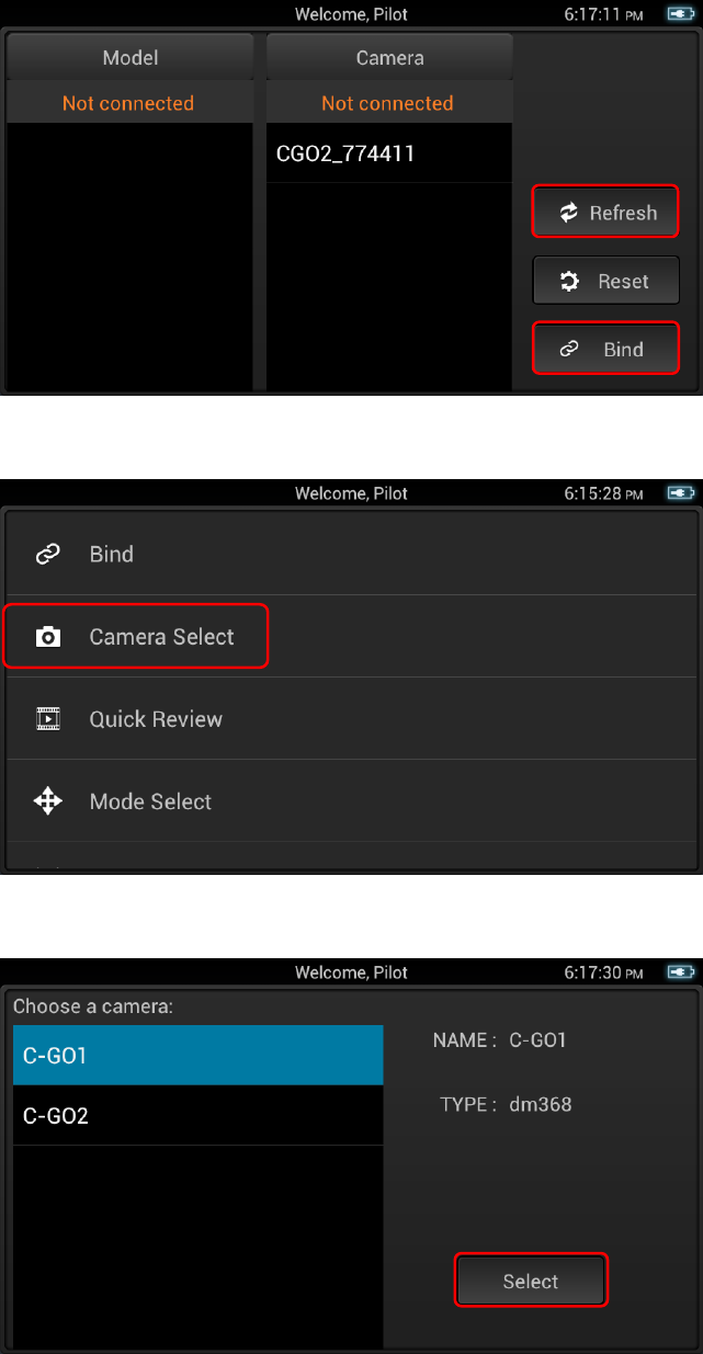 camera, then tap the Bind button/icon