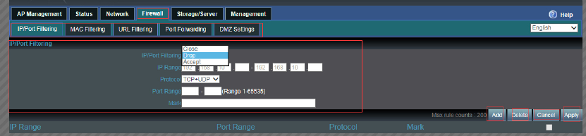 IP/Portforwardingenable,routerwilllimitedthedataforwardingaccordingtothefilteringrule.If