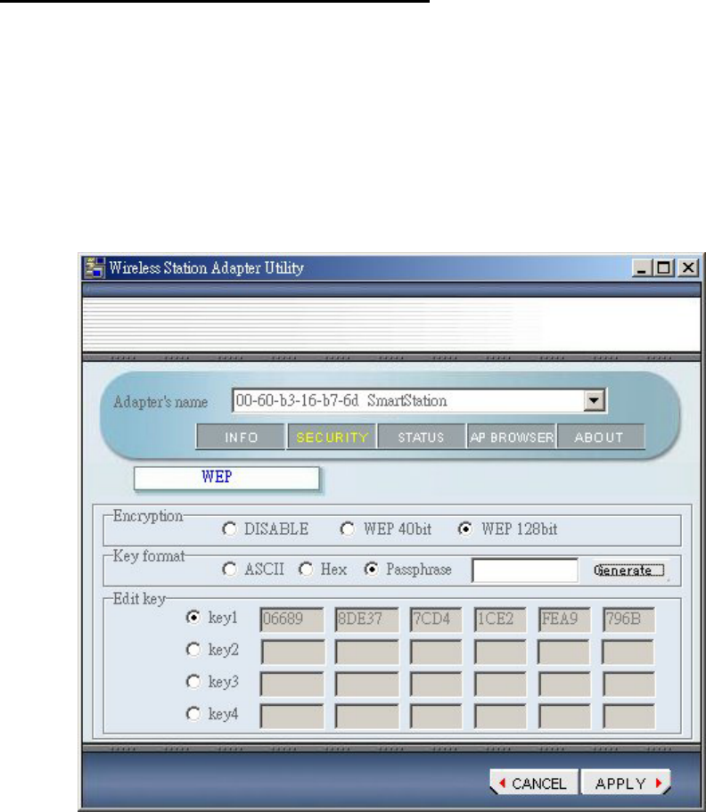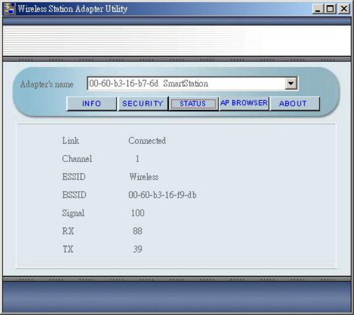 The Wireless Station Adapter Utility provides 5 items for you to monitor and configure the