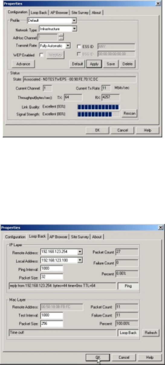 wireless LAN configuration, you may run the loopback test by click the Look back button to