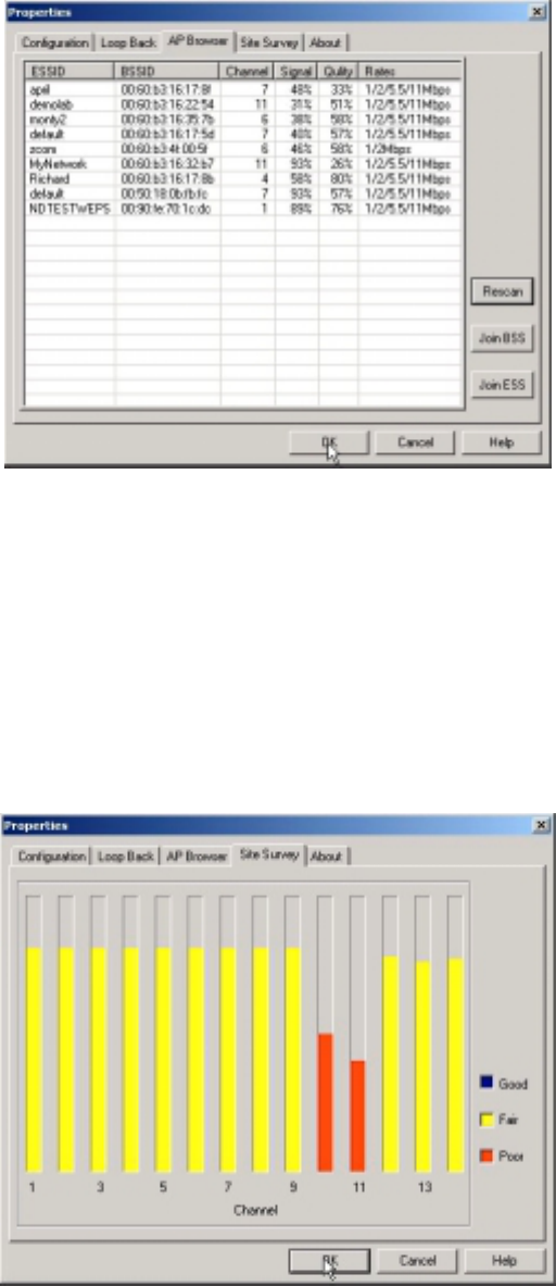 BSSID, Channel, Signal, Quality and Supported Rates. To join any of the displayed Access