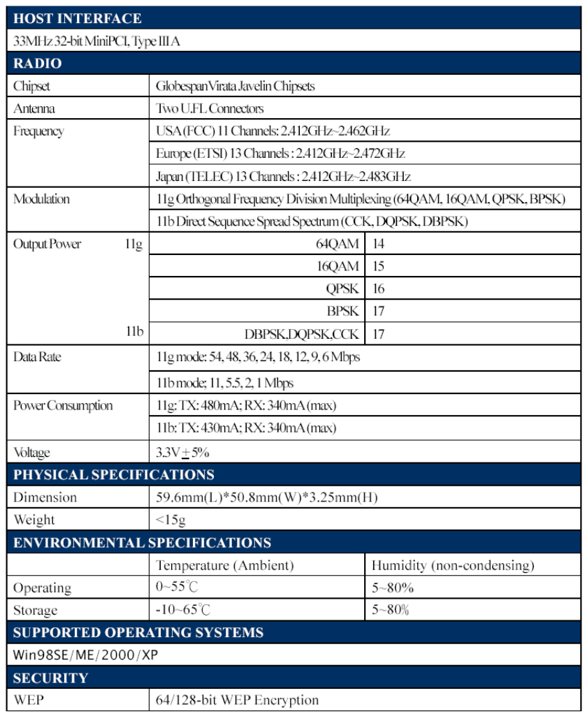 IEEE 802.11 b/g WLAN MiniPCI Card is the perfect solution for your wireless network