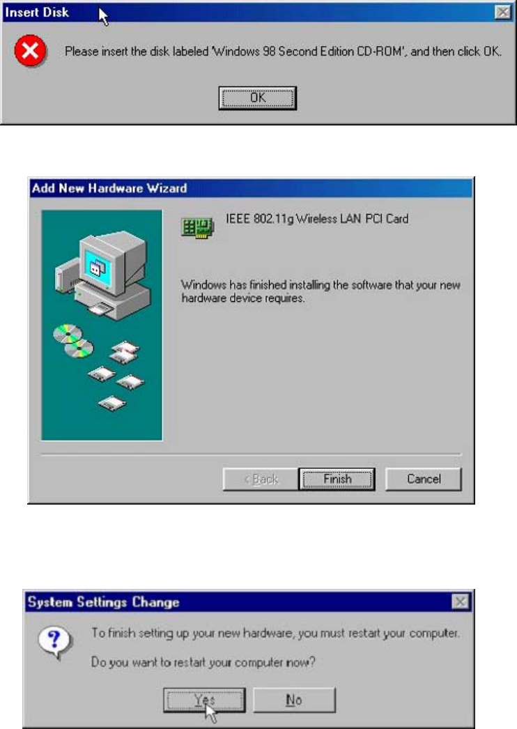 802.11g Wireless LAN PCI Card for the Windows XP/2000/ME/98SE operating systems.