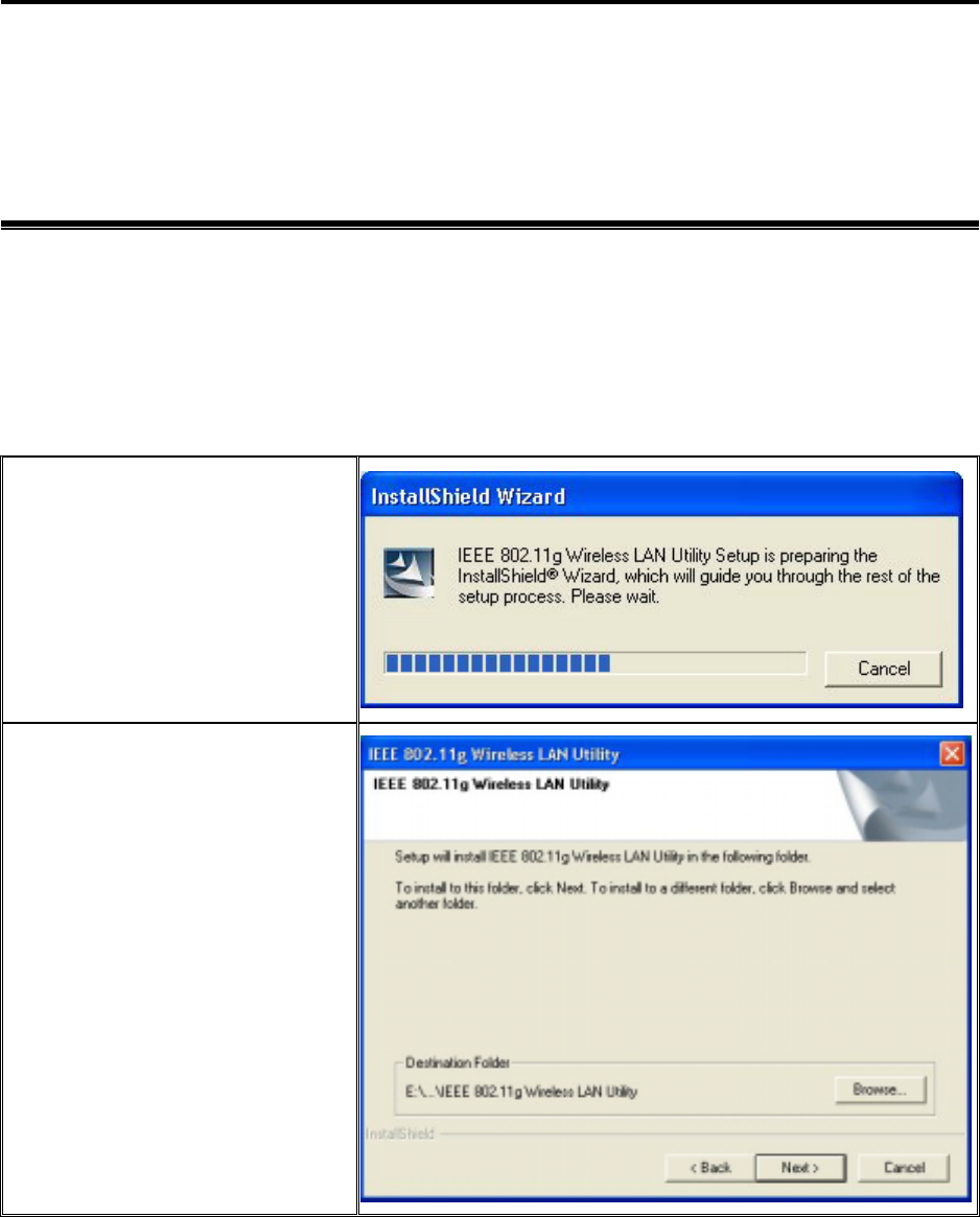 The complete installation of the 802.11g Wireless LAN PCI Card consists of the following