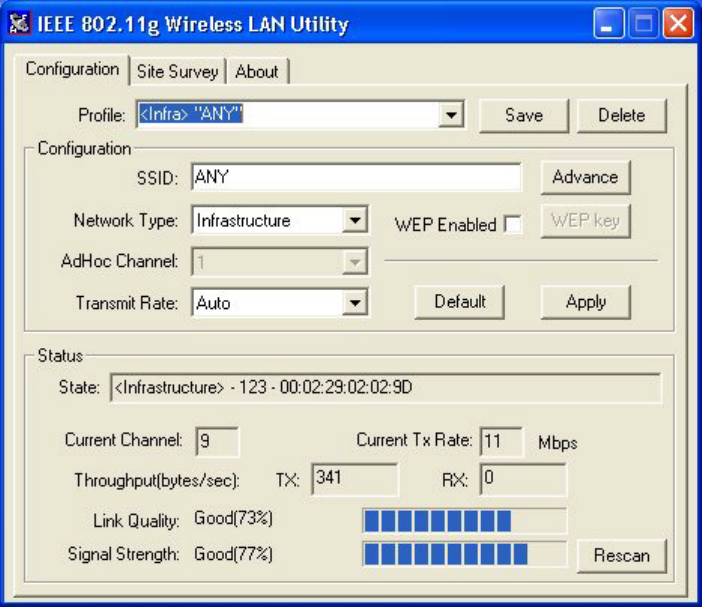 # Solid Green – Connect with the Access Point or Ad-Hoc wireless workstation.