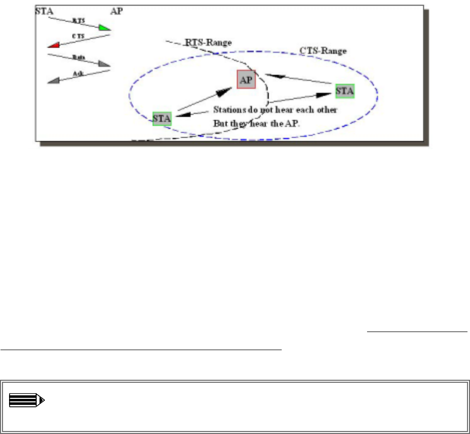 going to transmit the data. Upon receipt, the Access Point will respond with a CTS message to