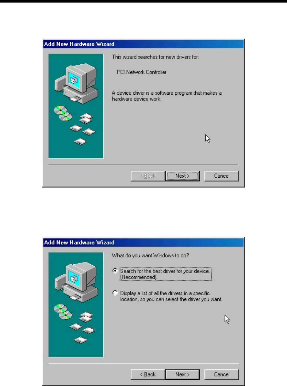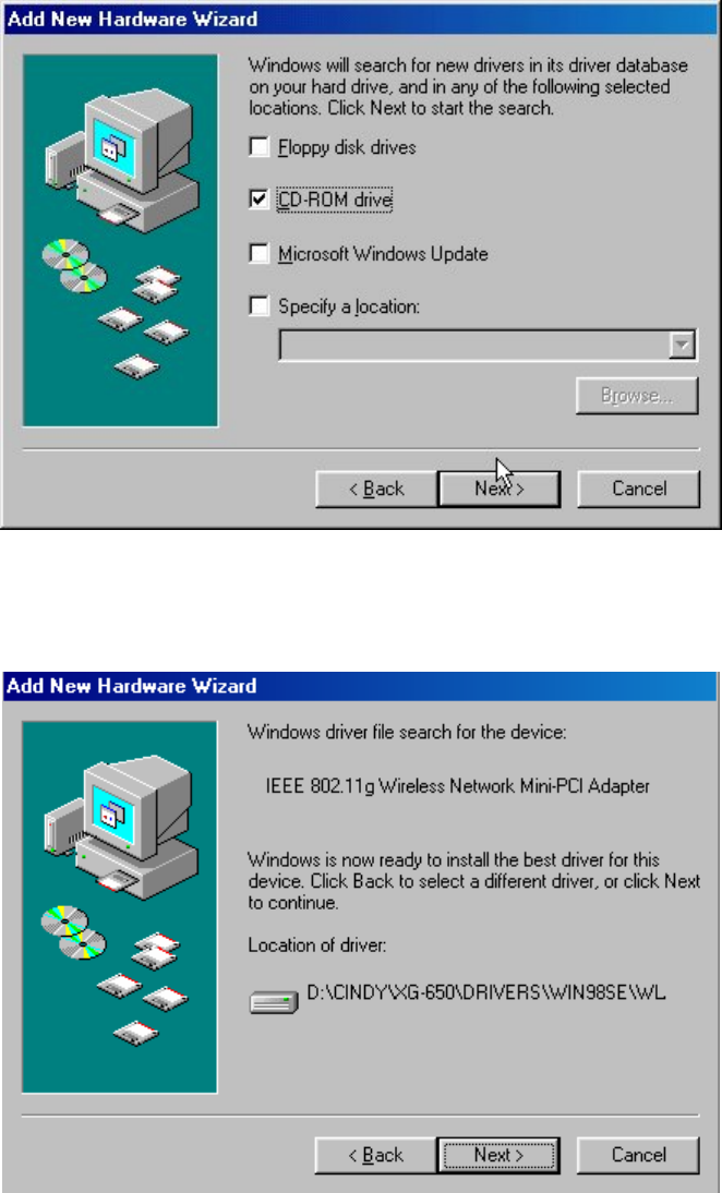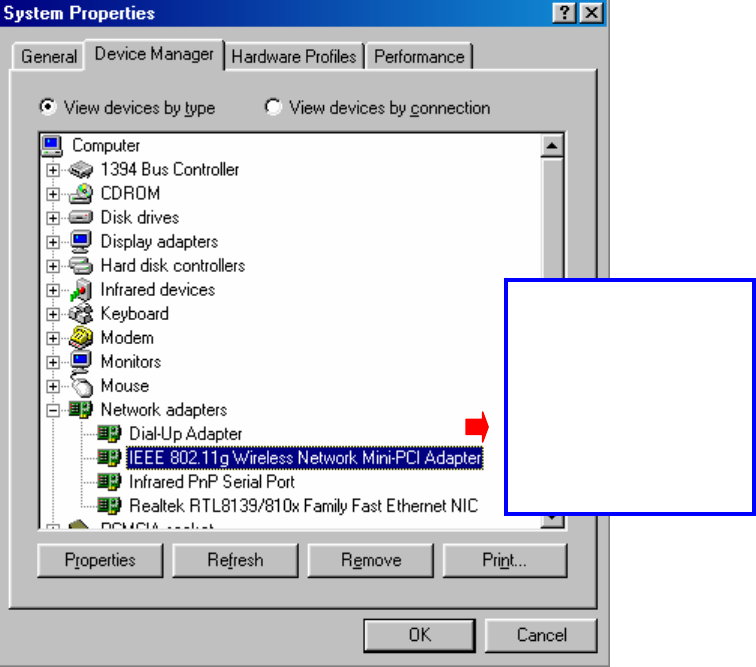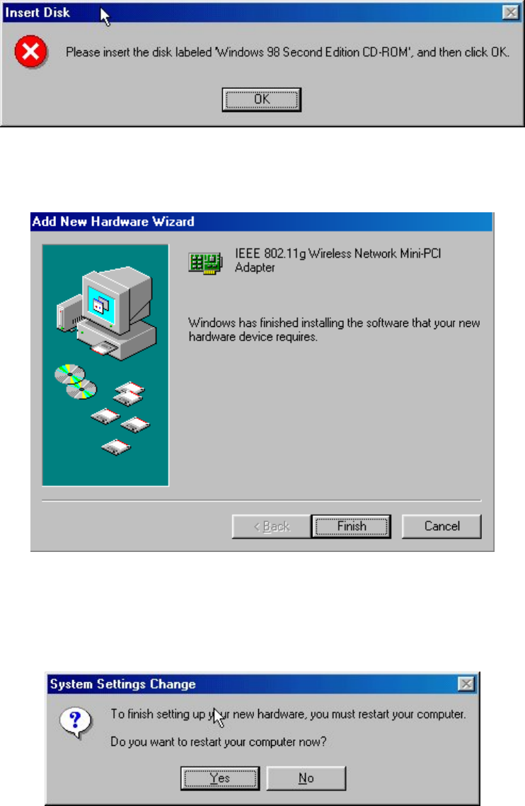 3-3 Set up Wireless Network Mini-PCI Adapter for Windows 98SE/ ME.......................... 18
