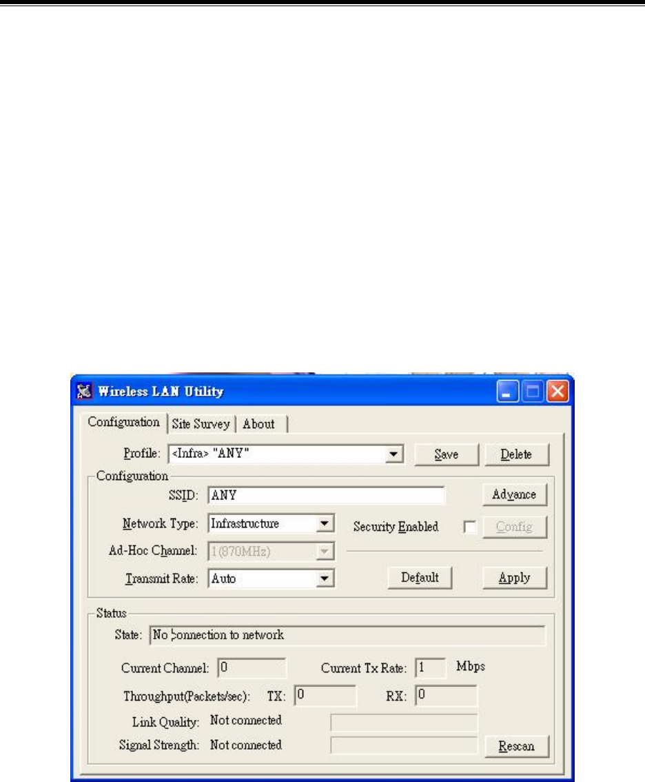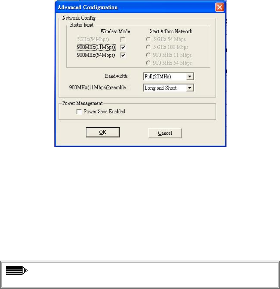 The WLAN Utility also offers the advanced configuration for user to set the 900MHz Wireless
