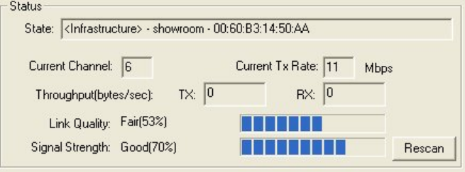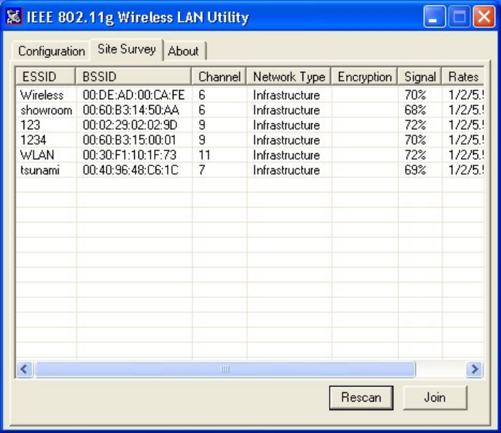 By clicking the Rescan button, the Site Survey can display Access Points around the working