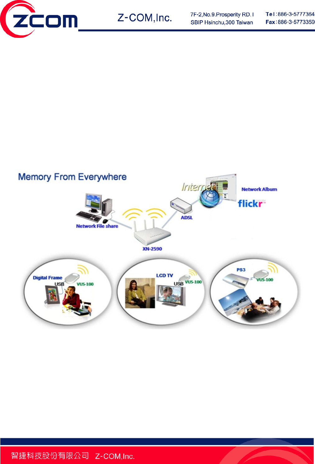 This manual explains Z-Com VUS-100 IEEE 802.11n Wireless Virtual USB Storage (hereafter called