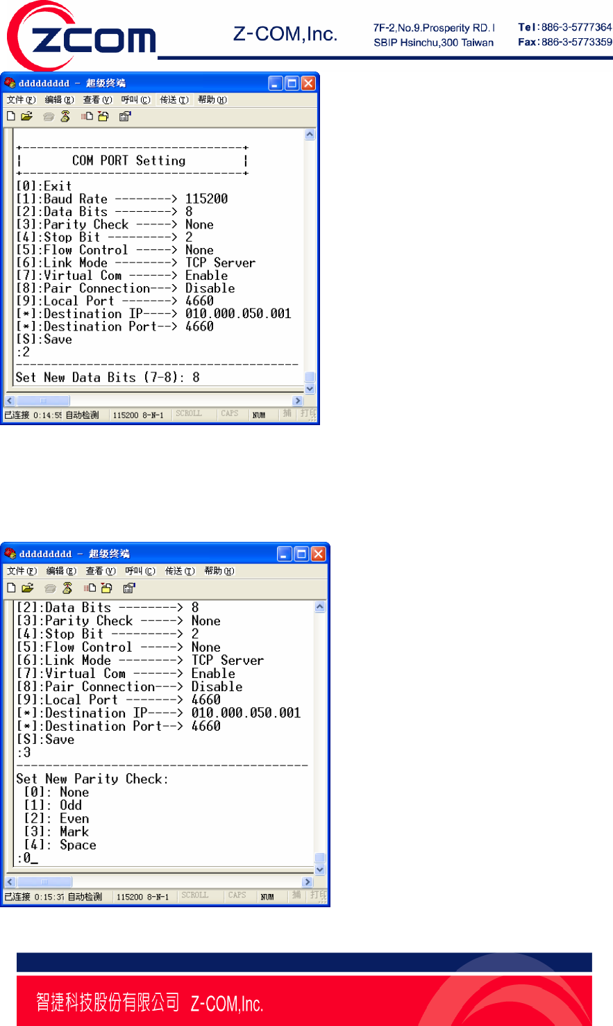 You can select the Data bits from the radio button ”7 bits or 8 bits”