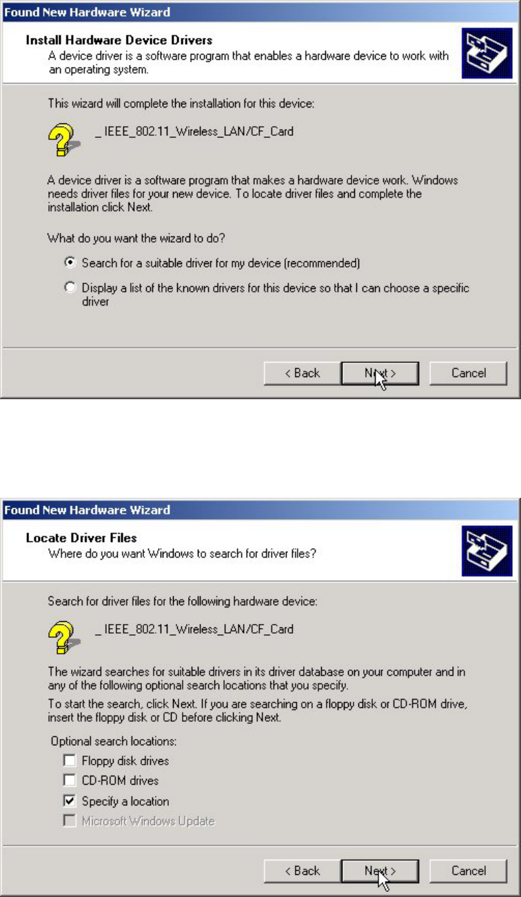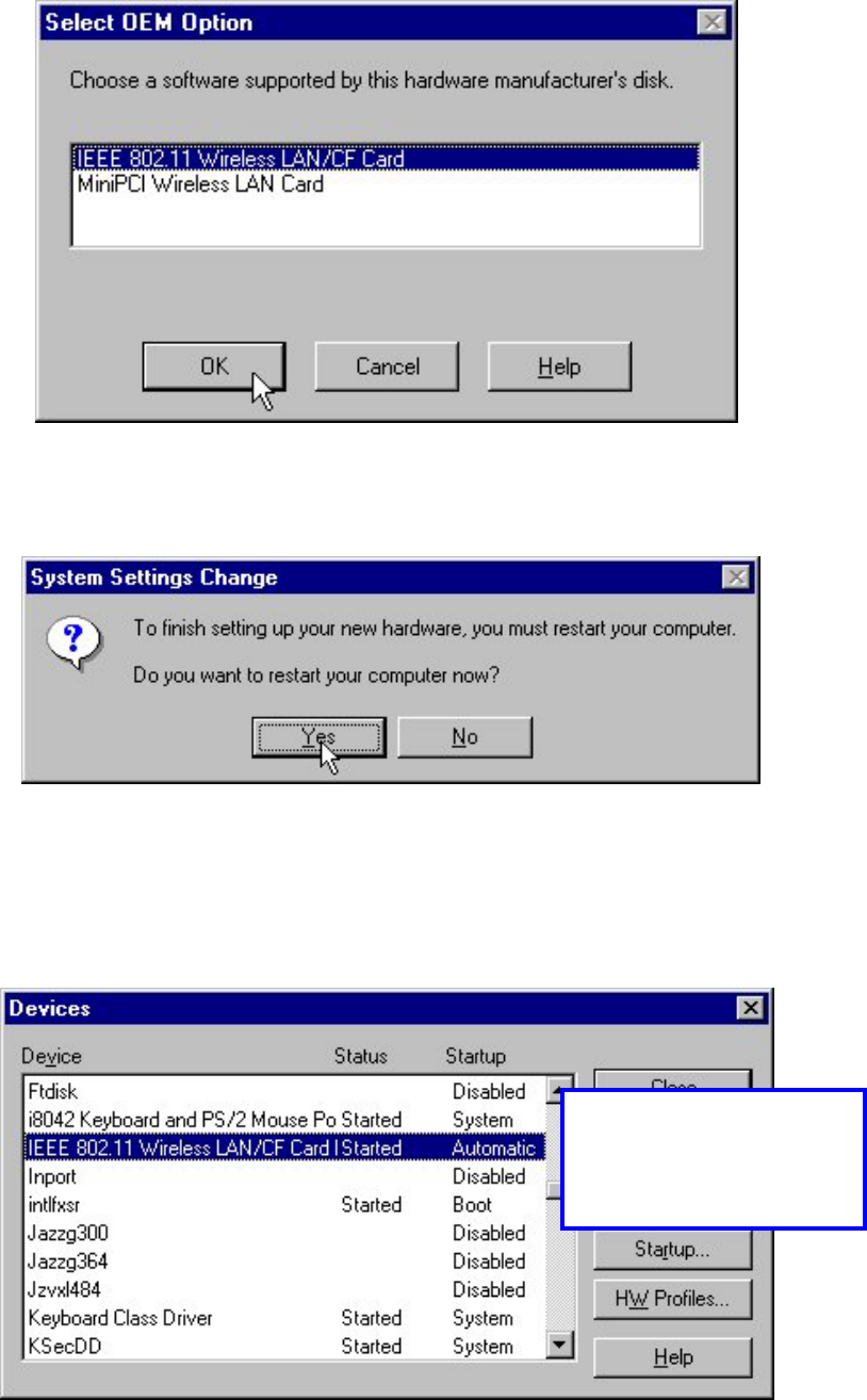 The software package works only on the Wireless LAN CF Card and Wireless LAN PCMCIA