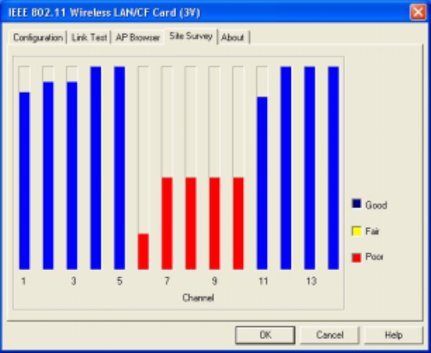 When the Site Survey screen is displayed, the channel quality of all 14 radio channels will be