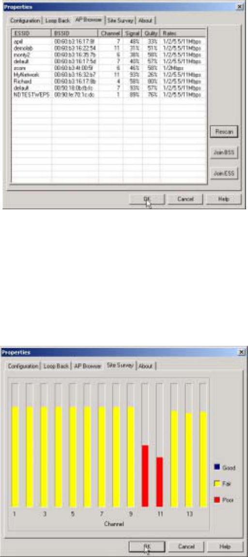 By clicking the Rescan button, the AP Browser can display all the Access Points around
