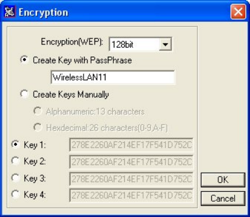 and type a string in the Create Key with Passphrase field. Select one key from the 4 WEP
