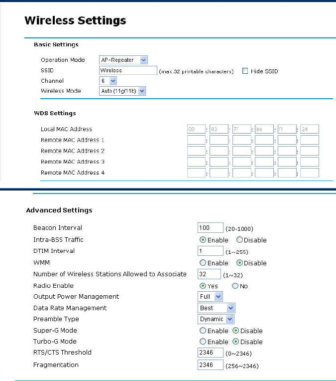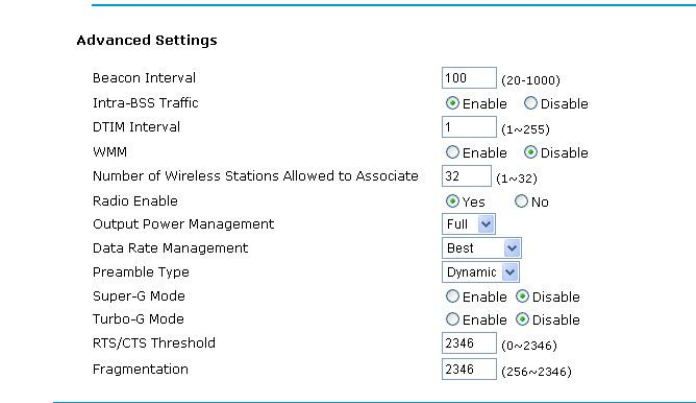 11g Radio 54Mbps 22.58dBm (Max.)