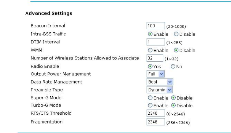 Support Super-G and Turbo-G: increase the throughput performance.