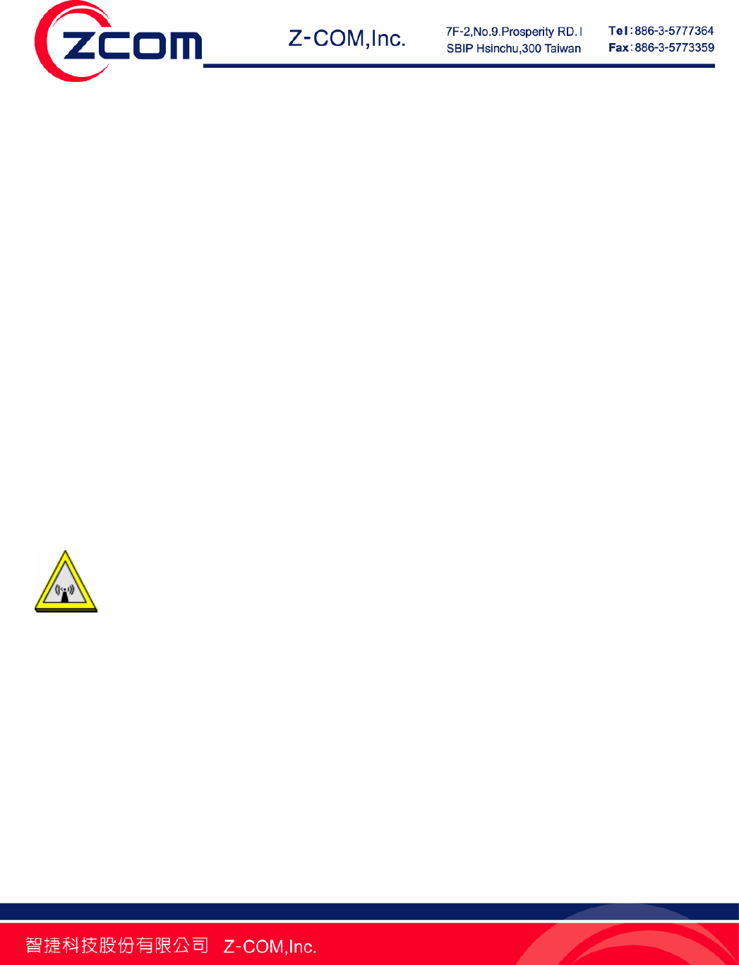 Z Com XG624V02 802.11b/g Wireless MiniPCI Card User Manual