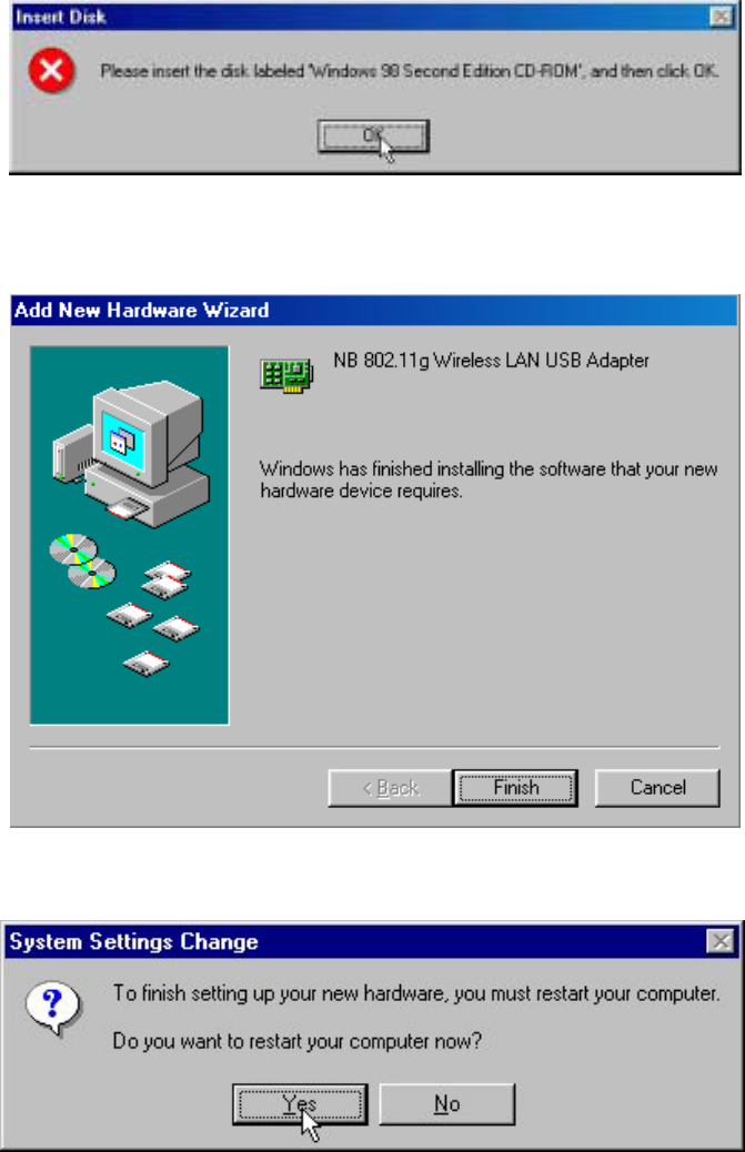 3-3 Set up IEEE 802.11g Wireless LAN USB Adapter for Windows 98SE/ ME.....15