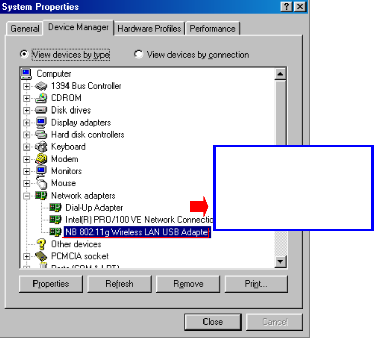 Adapter under Windows XP, Windows 2000, Windows 98SE or Windows ME. Take a