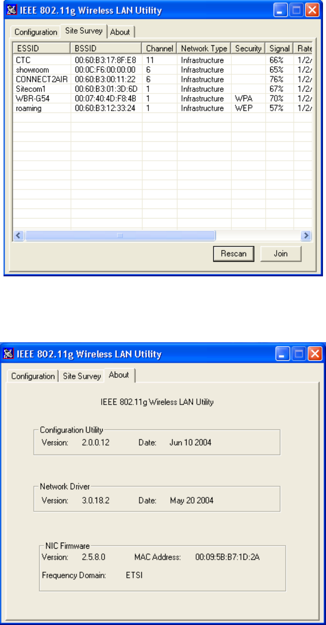 quality or signal strength is poor, rescanning can be used to push the radio off a weak Access Point