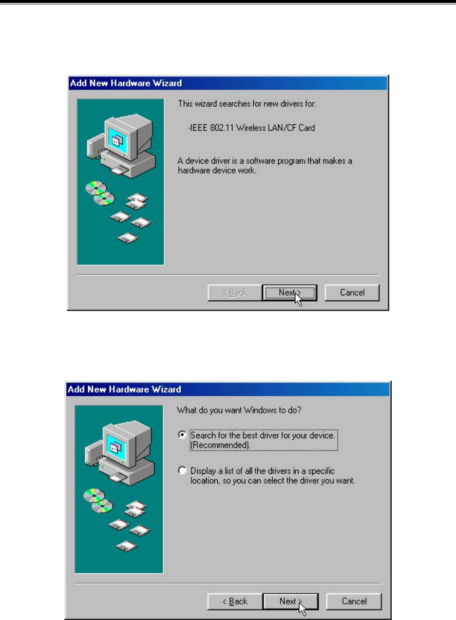 manual includes procedures for the setup of the 11Mbps Wireless LAN CF Card under