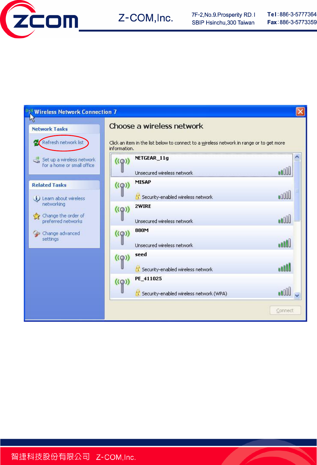 Step 4: Click Refresh network list to reload and search for available wireless devices within