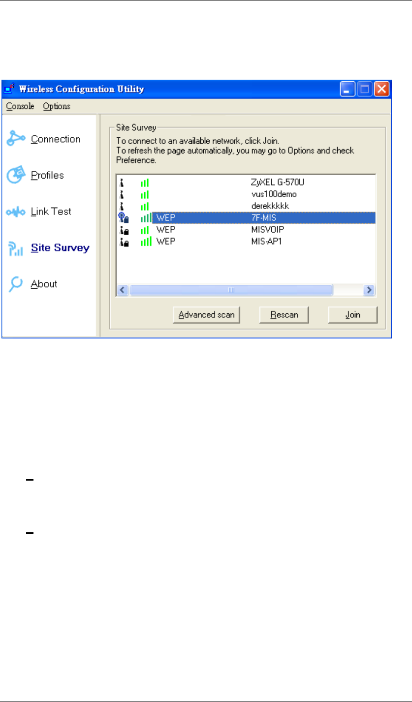 Figure 84 Wireless Configuration Utility-Site Survey