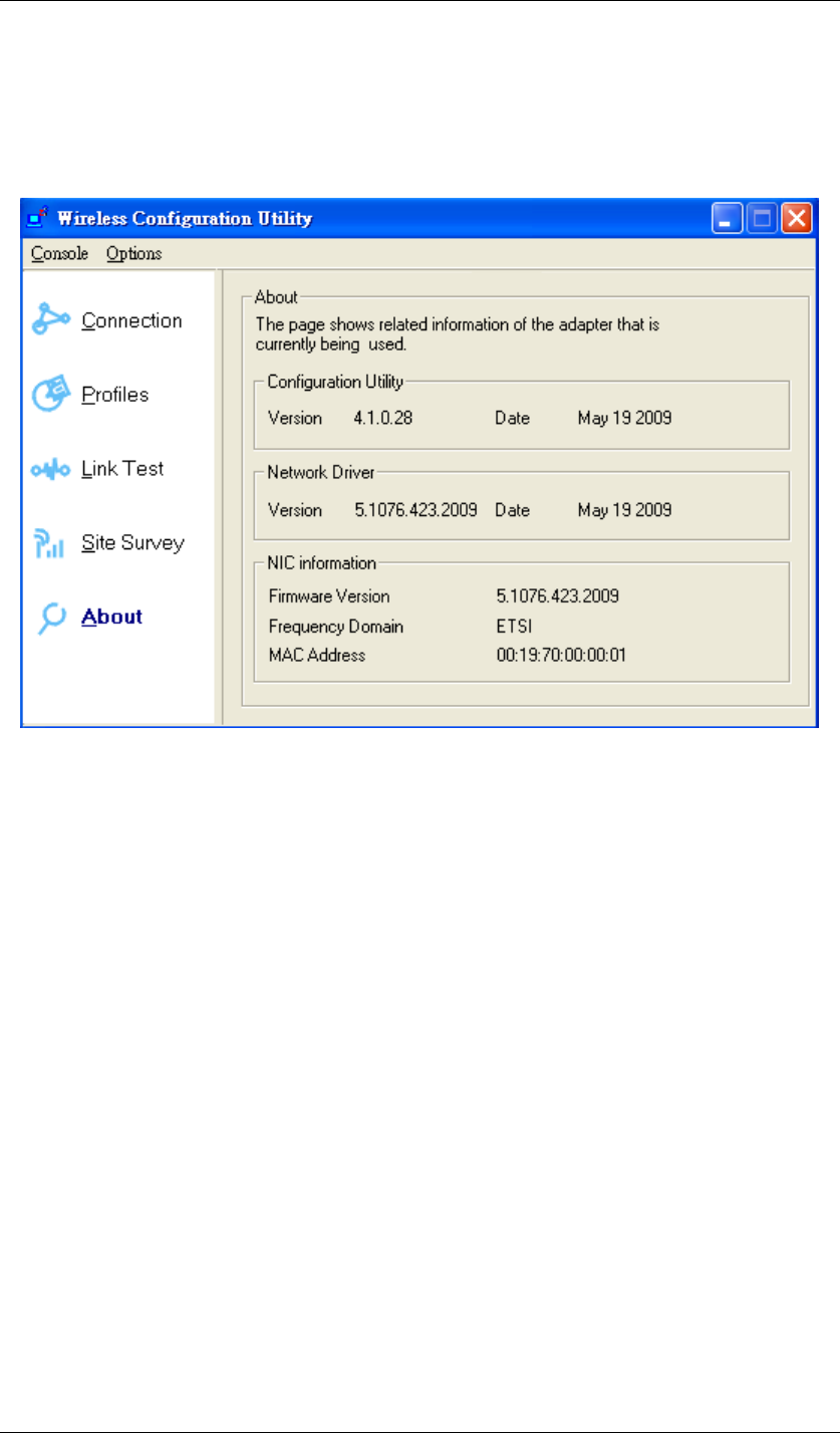 Figure 85 Wireless Configuration Utility-About